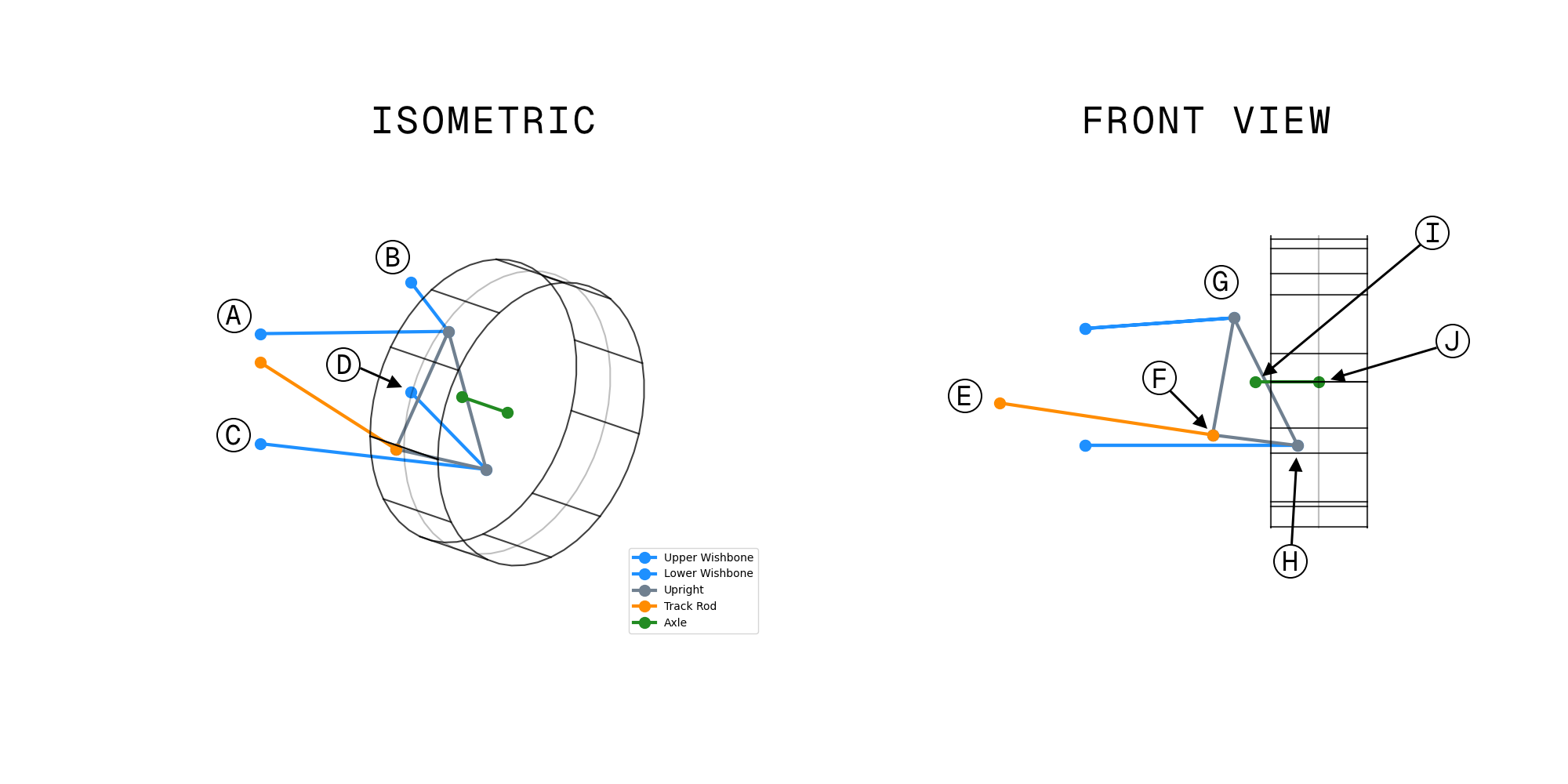- Point $G$ refers to both upper wishbone outboard point and upright top mount, i.e., the upper balljoint.