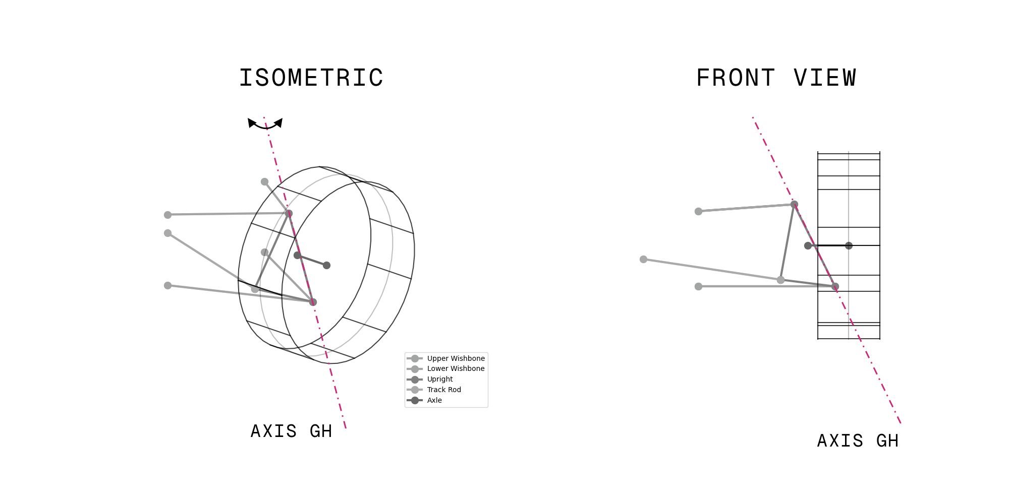 - Point $H$ refers to both lower wishbone outboard point and upright bottom mount, i.e., the lower balljoint.